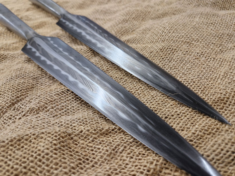 Die von mir gefertigten Speere haben Standardmässig ein Blatt (Klinge aus C60) und eine angeschweisste Tülle ( der Teil der auf den Schaft gesteckt wird) aus weichem Baustahl, natürlich